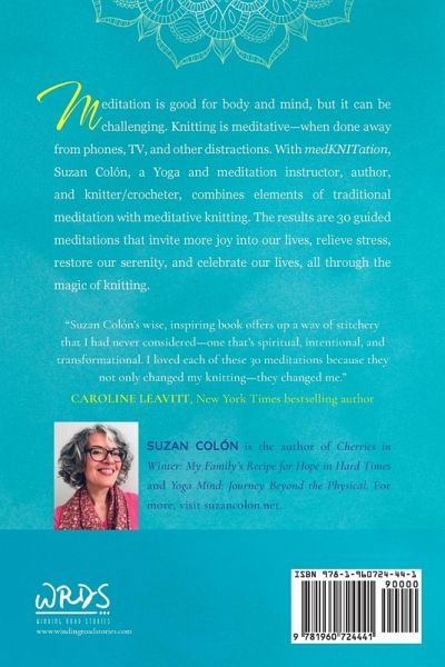 Meditation is good for the body and mind, but it can be challenging. Knitting is meditative-when done away from phones, TV, and other distractions. With medKNITation, Suzan Colón, a Yoga and meditation instructor, author and knitter/crocheter, combines elements of traditional meditation with meditative knitting. The results are 30 guided meditations that invite more joy into our lives, relieve stress, restore our serenity, and celebrate our lives, all through the magic of knitting.