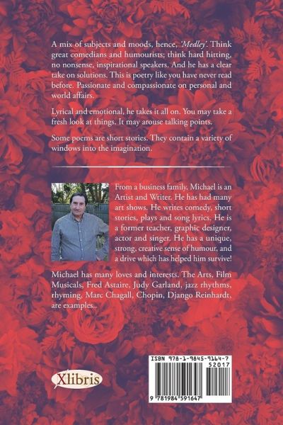 A mix of subjects and moods, hence, 'Medley'. Think great comedians and humourists; think hard hitting, no nonsense, inspirational speakers. And he has a clear take on solutions. This is poetry like you have never read before. Passionate and compassionate on personal and world affairs. Lyrical and emotional, he takes it all on. You may take a fresh look at things. It may arouse talking points. Some poems are short stories. They contain a variety of windows into the imagination.