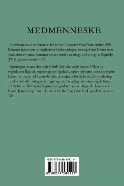 Medmenneske er en roman av den norske forfatteren Olav Duun, utgitt i 1929. Romanen regnes som et høydepunkt i forfatterskapet, men også som Duuns mest omdiskuterte roman. Romanen var den første i en trilogi, og ble fulgt av Ragnhild (1931) og Siste leveåret (1933). Spenningen mellom den onde Didrik Dale, den kuede sønnen Håkon og svigerdattera Ragnhild topper seg når Ragnhild dreper svigerfaren, mest for å spare Håkon fra byrden ved å gjøre det. Konklusjonen er likevel bitter: Det vonde drep du ikkje med øks. Trilogien er bygget opp omkring Ragnhilds mord og de følger det får for den lille menneskegruppe på gården Stavsund: Ragnhild, hennes mann Håkon, hennes svigermor Tale, sønnen Halvard og i siste bind også datteren vesle-Tale.