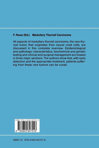 Medullary Thyroid Carcinoma is a rare thyroid tumororiginating from neural crest cells, the C-cell that impliesseveral special features, secretion of differentneuroendocrine markers, association with other endocrinetumors and familial appearance. The familial variant ofmedullary thyroid carcinoma allows an early detection bybiochemical and genetic testing. At that stage acceptablesurgical treatment will cure the patient. The sporadic formof medullary thyroid carcinoma will be diagnosed in aprogressive stage, but adequate surgical procedure can curethese patients too. Long term survival depends on stage,age, sex, and variant of the disease and seems to be as goodas in other differentiated thyroid cancers.