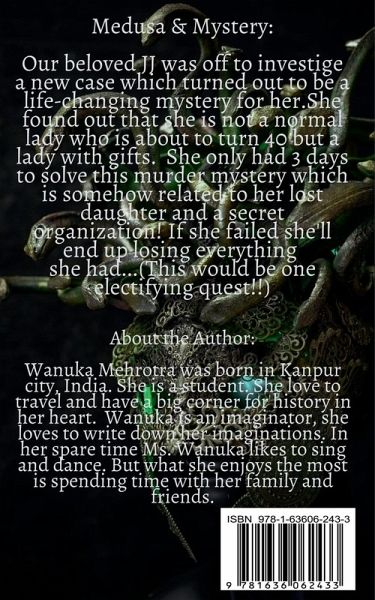 ""Mystery creates wonder and wonder is the basis of man's desire to understand""- Neil Armstrong Do you know JJ (Jasmine Jackson)? She is wise like a fox, that's why she is an amazing P.I. JJ was investigating on a murder case which somehow turned in finding of her long-lost daughter and also she found a secret organization! Our beloved JJ realized that she is surrounded by Greek mythology and even she is related to it! She soon discovered that she has some super-heroic abilities. And then she was about to solve this murder mystery with her intelligence and her gifts. But she ended up having a deadline of 3 days to solve this electrifying mission.