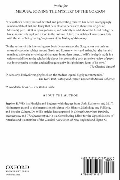 Medusa, the Gorgon, who turns those who gaze upon her to stone, is one of the most popular and enduring figures of Greek mythology. Long after many other figures from Greek myth have been forgotten, she continues to live in popular culture. In this fascinating study of the legend of Medusa, Stephen R. Wilk begins by refamiliarizing readers with the story through ancient authors and classical artwork, then looks at the interpretations that have been given of the meaning of the myth through the years. A new and original interpretation of the myth is offered, based upon astronomical phenomena. The use of the gorgoneion, the Face of the Gorgon, on shields and on roofing tiles is examined in light of parallels from around the world, and a unique interpretation of the reality behind the gorgoneion is suggested. Finally, the history of the Gorgon since classical times is explored, culminating in the modern use of Medusa as a symbol of Female Rage and Female Creativity.