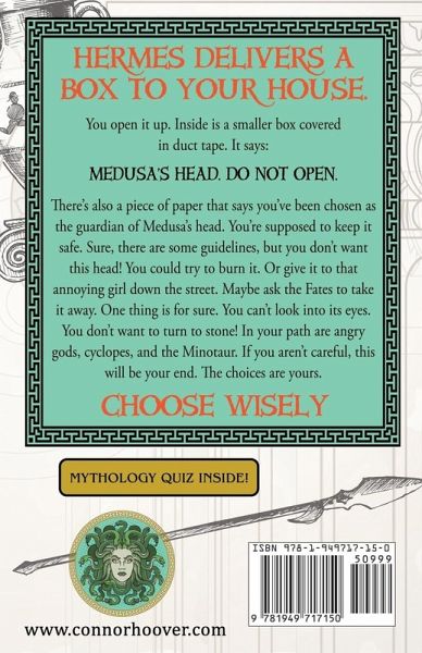 Medusa's head is delivered to your house! With over 40 possible endings!Hermes delivers a box to your house. You open it up. Inside is a smaller box covered in duct tape. It says: MEDUSA'S HEAD. DO NOT OPEN. There's also a piece of paper that says you've been chosen as the guardian of Medusa's head. You're supposed to keep it safe. Sure, there are some guidelines, but you don't want this head! You could try to burn it. Or give it to that annoying girl down the street. Maybe ask the Fates to take it away. One thing is for sure. You can't look into its eyes. You don't want to turn to stone! In your path are angry gods, cyclopes, and the Minotaur. If you aren't careful, this will be your end. The choices are yours. Choose wisely!BONUS MYTHOLOGY QUIZ INSIDE!