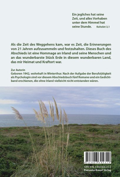 Als die Zeit des Weggehens kam, war es Zeit, die Erinnerungen von 21 Jahren aufzusammeln und festzuhalten. Dieses Buch des Abschieds ist eine Hommage an Irland und seine Menschen und an das wunderbarste Stück Erde in diesem wunderbaren Land, das mir Heimat und Kraftort war.