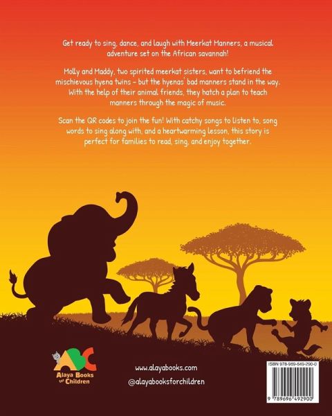 What happens when polite meerkats try to teach manners to rude hyenas? Join Molly and Maddy, two adventurous meerkat sisters, on a delightful journey across the African savanna in this 44-page, song-filled tale! The spirited sisters dream of making friends with the mischievous hyena twins, but their parents forbid it... hyenas with no manners are not welcome. Determined to help, Molly and Maddy enlist the advice of a wise python, a noble lion pride, and other fascinating animals to transform the hyenas' behaviour. With a heartwarming lesson and catchy songs, Meerkat Manners is a musical storybook that will entertain and inspire children and families alike. Scan the QR codes that are throughout the book to listen to the original songs. Why families and educators love Meerkat Manners: ¿ A fun way to learn about the value of good manners. ¿ Interactive musical experience: scan the QR codes to listen and sing along! ¿ Beautiful illustrations and engaging storytelling. ¿ A perfect story to read, sing, and enjoy together. Will the hyenas learn to be polite and make new friends? There's only one way to find out!