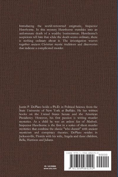 Introducing the world-renowned enigmatic, Inspector Hawthorne. In this mystery Hawthorne stumbles into an unfortunate death of a wealthy businessman. Hawthorne's suspicions tell him that while the death seems ordinary, there is nothing ordinary about it. The investigation weaves together ancient Christian mystic traditions and discoveries that indicate a complicated murder.