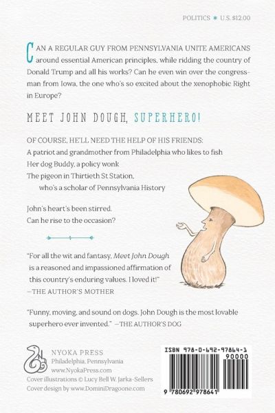 As Alida mixes bread dough in her small kitchen, she listens to the radio with incredulity. The Trump administration has just come to power in Washington, and America's most fundamental values and traditions are in danger. Her dog Buddy—a policy wonk—is equally outraged. If Congress is unwilling to act, who will protect American democracy? The answer lies in Alida's mixing bowl, for she is making sourdough bread, and the yeast (collected from the air in her Philadelphia kitchen) turns out to be extraordinary. Meet John Dough, superhero, and learn how he comes to the aid of a troubled and divided nation. The action unfolds in Philadelphia PA, Iowa, Washington D.C., and the Land of the Plant People, where the inhabitants are proud to live "Free from the Bonds of Reason." Pennsylvania history both inspires and horrifies our hero John, who is educated by the well-read Alida, her politically savvy dog, and a sympathetic and scholarly pigeon at Thirtieth Street Station. Thirty-six illustrations range from touching to darkly satirical. This is a funny book about important ideas. Readers will laugh aloud, cry, and adjust their ideas about American history.