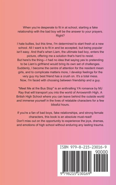 When you're desperate to fit in at school, starting a fake relationship with the bad boy will be the answer to your prayers. Right? I hate bullies, but this time, I'm determined to start fresh at a new school. All I want is to fit in and be accepted, but being popular isn't easy. And that's when Liam, the ultimate bad boy, enters the picture, offering me a solution that's hard to resist. But here's the thing-I had no idea that saying yes to pretending to be Liam's girlfriend would bring its own set of challenges. Suddenly, I become the centre of attention for the resident mean girls, and to complicate matters more, I develop feelings for the very guy my best friend has a crush on. It's a total mess. Now, I'm faced with choosing between friendship and a guy. "Meet Me at the Bus Stop" is an enthralling YA romance by MJ Ray that will transport you into the world of Arrowsmith High, A British High School where you can leave behind the outside world and immerse yourself in the lives of relatable characters for a few blissful hours. If you're a fan of bad boys, fake relationships, and strong female characters, this book is an absolute must-read! Don't miss out on the opportunity to experience the joys, dramas, and emotions of high school without enduring any lasting trauma.