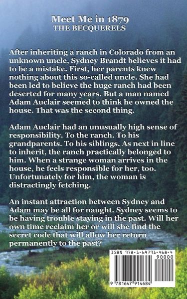 After inheriting a ranch in Colorado from an unknown uncle, Sydney Brandt believes it had to be a mistake. First, her parents knew nothing about this so-called uncle. She had been led to believe the huge ranch had been deserted for many years. But a man named Adam Auclair seemed to think he owned the house. That was the second thing. Adam Auclair had an unusually high sense of responsibility. To the ranch. To his grandparents. To his siblings. As next in line to inherit, the ranch practically belonged to him. When a strange woman arrives in the house, he feels responsible for her, too. Unfortunately for him, the woman is distractingly fetching. An instant attraction between Sydney and Adam may be all for naught. Sydney seems to be having trouble staying in the past. Will her own time reclaim her or will she find the secret code that will allow her return permanently to the past? An entertaining cozy time travel romance with a happily-ever-after that defies time itself.