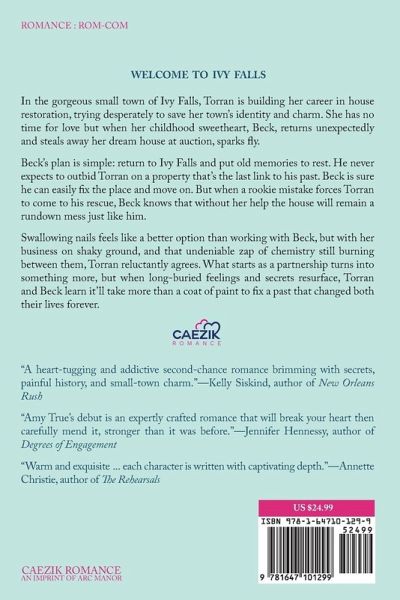 In Meet Me In Ivy Falls, Amy True weaves a heartwarming tale of love, restoration, and new beginnings. Set in the quaint town of Ivy Falls, the story unfolds around the renovation of historic homes, where the past and present merge in unexpected ways. As the protagonist navigates the challenges of her project, she discovers a community brimming with secrets, friendships, and romantic possibilities. This novel captures the essence of small-town charm, exploring the dynamics of community life and the power of coming together. Through engaging characters and relatable struggles, it delves into the complexities of relationships, both old and new. Ivy Falls becomes more than just a setting-it's a character in its own right, full of history and stories waiting to be told. A perfect blend of romance, drama, and heartfelt moments, Meet Me in Ivy Falls is a journey of self-discovery and connection. It's a celebration of the ties that bind us to places and people, making it an ideal read for those who cherish love, history, and the magic of a well-told story.