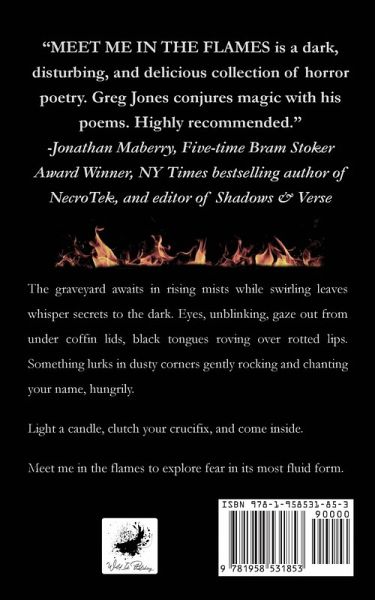"All is dark in cold arms lie Gaze to you an empty eye Fingers laced for our descending Beckon you come share my ending No, the heat comes not from shame You must, my love, take faith in flames" The graveyard awaits in rising mists while swirling leaves whisper secrets to the dark. Eyes, unblinking, gaze out from under coffin lids, black tongues roving over rotted lips. Something lurks in dusty corners gently rocking and chanting your name, hungrily. Light a candle, clutch your crucifix, and come inside. Meet me in the flames to explore fear in its most fluid form.