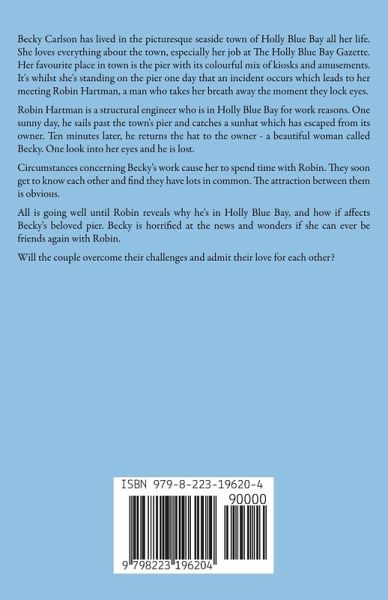 Becky Carlson has lived in the picturesque seaside town of Holly Blue Bay all her life. She loves everything about the town, especially her job at The Holly Blue Bay Gazette. Her favourite place in town is the pier with its colourful mix of kiosks and amusements. It's whilst she's standing on the pier one day that an incident occurs which leads to her meeting Robin Hartman, a man who takes her breath away the moment they lock eyes. Robin Hartman is a structural engineer who is in Holly Blue Bay for work reasons. One sunny day, he sails past the town's pier and catches a sunhat which has escaped from its owner. Ten minutes later, he returns the hat to the owner - a beautiful woman called Becky. One look into her eyes and he is lost. Circumstances concerning Becky's work cause her to spend time with Robin. They soon get to know each other and find they have lots in common. The attraction between them is obvious. All is going well until Robin reveals why he's in Holly Blue Bay, and how if affects Becky's beloved pier. Becky is horrified at the news and wonders if she can ever be friends again with Robin. Will the couple overcome their challenges and admit their love for each other?