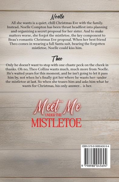 Noelle All she wants is a quiet, chill Christmas Eve with the family. Instead, Noelle Compton has been thrust headfirst into planning and organizing a secret proposal for her sister. And to make matters worse, she forgot the mistletoe, the key component to Beau's romantic Christmas Eve proposal. When her best friend Theo comes in wearing a full Santa suit, bearing the forgotten mistletoe, Noelle could kiss him. Theo Only he doesn't want to stop with one chaste peck on the cheek in thanks. Oh no, Theo Collins wants much, much more from Noelle. He's waited years for this moment, and he isn't going to let it pass him by, not when he's finally got her where he wants her--under the mistletoe at last. So when she teases him and asks him what he wants for Christmas, his only answer... is her. The Holiday Novella Collection is a fun, spicy, and swoony romance series of holiday themed novellas. All interconnected and world crossing with Danielle's other book series, these quick read novellas are the perfect addition to your holiday themed reading lists! Packed with heartwarming romance and all the spice, you'll fall hard and fast for these amazing couples!
