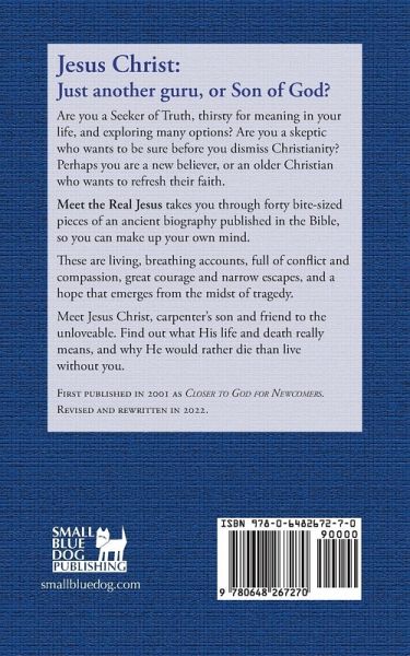 Jesus Christ: Just another guru, or Son of God? Are you a Seeker of Truth, thirsty for meaning in your life, and exploring many options? Are you a skeptic who wants to be sure before you dismiss Christianity? Perhaps you are a new believer, or an older Christian who wants to refresh their faith. Meet the Real Jesus takes you through forty bite-sized pieces of an ancient biography published in the Bible, so you can make up your own mind. These are living, breathing accounts, full of conflict and compassion, great courage and narrow escapes, and a hope that emerges from the midst of tragedy. Meet Jesus Christ, carpenter's son and friend to the unloveable. Find out what His life and death really means, and why He would rather die than live without you. First published in 2001 as Closer to God for Newcomers. Revised and rewritten in 2022.
