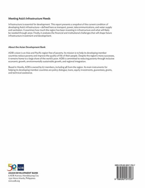 Developing Asia will need to invest $1.7 trillion per year in infrastructure until 2030 to maintain its growth momentum, tackle poverty, and respond to climate change. This report examines developing Asia's infrastructure-defined as transport, power, telecommunications, water supply and sanitation. It examines how much the region has been investing in infrastructure and what will likely be needed through 2030. It also analyzes the challenges shaping future infrastructure investment and development.
