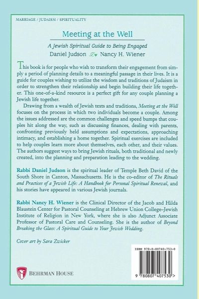 For people who wish to transform their engagement from simply a period of planning details to a meaningful passage in their lives, Meeting at the Well is the ideal guide, using the wisdom and traditions of Judaism to begin building their life together. Drawing from a wealth of Jewish texts and traditions, this one-of-a-kind resource is a must-have for any couple planning a Jewish life together. Also makes an excellent gift from clergy to couples.