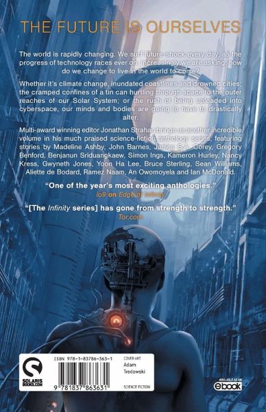 The Future Is Ourselves The world is rapidly changing. We surf future-shock every day, as the progress of technology races ever on. Increasingly we are asking: how do we change to live in the world to come? Whether it's climate change, inundated coastlines and drowned cities; the cramped confines of a tin can hurtling through space to the outer reaches of our Solar System; or the rush of being uploaded into cyberspace, our minds and bodies are going to have to drastically alter. Multi-award winning editor Jonathan Strahan brings us another incredible volume in his much praised science-fiction anthology series, featuring stories by Madeline Ashby, John Barnes, James S.A. Corey, Gregory Benford, Benjanun Sriduangkaew, Simon Ings, Kameron Hurley, Nancy Kress, Gwyneth Jones, Yoon Ha Lee, Bruce Sterling, Sean Williams, Aliette de Bodard, Ramez Naam, An Owomoyela and Ian McDonald.