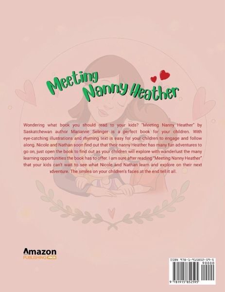 Wondering what book you should read to your kids? "Meeting Nanny Heather" by Saskatchewan author Marianne Selinger is a perfect book for your children. With eye-catching illustrations and rhyming text is easy for your children to engage and follow along. Nicole and Nathan soon find out that their nanny Heather has many fun adventures to go on, just open the book to find out as your children will explore with wanderlust the many learning opportunities the book has to offer. I am sure after reading "Meeting Nanny Heather" that your kids can't wait to see what Nicole and Nathan learn and explore on their next adventure. The smiles on your children's faces at the end tell it all.