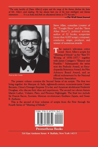 The nation's television critics voted Steve Allen's "Meeting of Minds" scripts as the 'Best TV Writing of 1976-1977', together with James Costigan's "Eleanor and Franklin". Subsequently the series won the Peabody Award, an Encyclopaedia Britannica Award, the Film Advisory Board Award, and an official endorsement by the National Education Association. This volume contains the second Series of six scripts. The first two programs bring together Margaret Sanger, Mohandas Gandhi, and Adam Smith; the second two include Niccolo Paganini, William Blake, and Leonardo da Vinci; and the final two feature Oliver Cromwell, the nineteenth-century Irish nationalist leader Daniel O'Connell, and Catherine the Great. This is the second of four volumes of scripts from the First through the Fourth Series of "Meeting of Minds".
