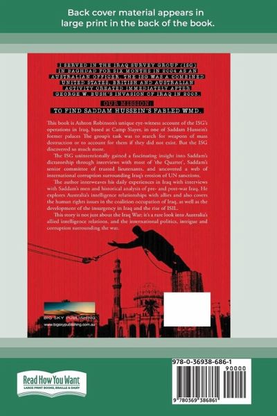 This book is Ashton Robinson's unique eye-witness account of the ISG's operations in Iraq, based at Camp Slayer, in one of Saddam Hussein's former palaces The group's task was to search for weapons of mass destruction or to account for them if they did not exist. But the ISG discovered so much more.