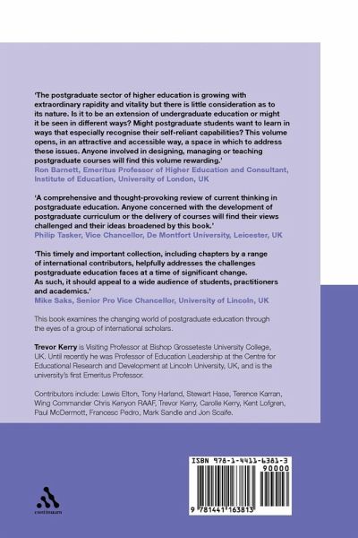 This text takes a radical look at the nature of adult learning in the postgraduate context and at the implications of this for universities and their courses. While, over recent decades, schools have had to undergo major re-assessments about how learning is developed into curriculum, how learning is delivered to students, and how that learning is assessed, universities have remained very largely detached from these pedagogical/andragogical issues. However, the circumstances of higher education provision have changed. There is also real pressure now from vocationalism. Meeting the Challenges of Change in Postgraduate Education places these movements in both a UK and a wider context examines the nature of learning and teaching in postgraduate education and opens up the debate for rethinking university provision. The book examines concepts such as integration as ways of retaining the higher order skills of a university education over against narrower, technicist approaches and suggest a continuum of provision, but one in which the learner takes centre stage.