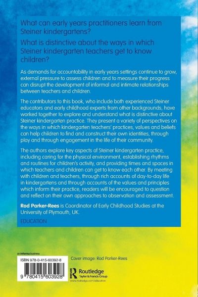 Contributors to this accessible book will show how Steiner kindergarten philosophy and practice differs from approaches found in many nursery and reception classes, particularly with regards to assessment, encouraging readers to engage in critical reflection on their own practice as early years professionals.