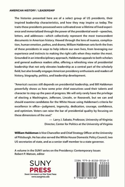 Inspiring stories of six US presidents and the distinctive leadership characteristics that set them apart and transformed America. Finalist for the 2024 Foreword INDIES Book of the Year Award in the History category The histories presented here are of a select group of US presidents, their inspired leadership characteristics, and how they may inspire us today. The traits these presidents possessed were cultivated over a lifetime of lived experience and immortalized through the power of the presidential word-speeches, letters, and addresses-which collectively represent the most transcendent documents in American history. Viewed through the lens of nuance, complication, human emotion, pathos, and drama, William Haldeman sets forth the lives of these presidents in ways to help inform our own lives, from leveraging our experience and instincts to making the right calls when they matter the most. Grounded in an interdisciplinary approach, Haldeman appeals to both scholars and general audience readers alike, offering a refreshing view of presidential leadership that not only elevates leadership as a central part of the scholarly field, but also broadly engages American presidency enthusiasts and readers of history, biography, politics, and leadership development.