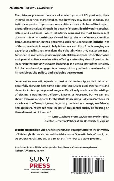 Inspiring stories of six US presidents and the distinctive leadership characteristics that set them apart and transformed America. Finalist for the 2024 Foreword INDIES Book of the Year Award in the History category The histories presented here are of a select group of US presidents, their inspired leadership characteristics, and how they may inspire us today. The traits these presidents possessed were cultivated over a lifetime of lived experience and immortalized through the power of the presidential word-speeches, letters, and addresses-which collectively represent the most transcendent documents in American history. Viewed through the lens of nuance, complication, human emotion, pathos, and drama, William Haldeman sets forth the lives of these presidents in ways to help inform our own lives, from leveraging our experience and instincts to making the right calls when they matter the most. Grounded in an interdisciplinary approach, Haldeman appeals to both scholars and general audience readers alike, offering a refreshing view of presidential leadership that not only elevates leadership as a central part of the scholarly field, but also broadly engages American presidency enthusiasts and readers of history, biography, politics, and leadership development.