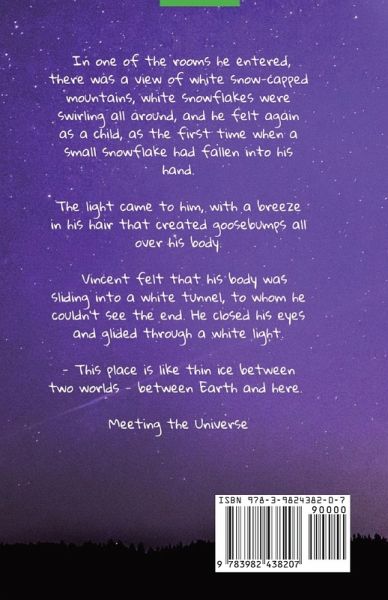 Vincent's first vivid childhood memories had flown with the wings of the wind, and they began to speak to him in a loud voice. He began to sink into them like quicksand. The glass of brandy slipped out of his hands, just as he had decided to pour himself a bit more of the alcohol, and shattered into many tiny shards with a loud bang. - Maybe it's a warning that I must change my life? - He saw nothing but a prism with white light. He was flying towards the light beam at a very high speed, just like the most powerful space rocket. The bright rays of light, like a white inclusive tunnel, began to narrow, and a mountain in the color of halva appeared in from of his eyes. He was flying directly towards it, just like the fastest eagle, and it seemed like he was about to crash into it. He felt scared of the unknown and that his body was moving by itself and that he couldn't control it anymore but, at the same time, he felt free because he could fly at such a tremendous speed, realizing that one part of his life was over. He was still alive but, only in a different form. Vincent was no longer Vincent because he no longer had his old name, and he didn't have his ancient past. Instead, he was greeted by a whole new life. His little heart was beating, and when he took a deep breath, he felt that he was alive again and felt his mother's warmth. The baby opened his little mouth and smiled. It was very dark but comfortable enough to turn slightly from side to side. ¿