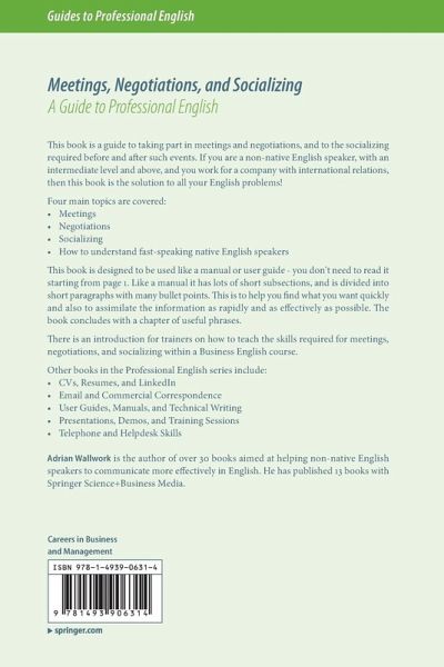 This book is a guide to taking part in meetings and negotiations, and to the socializing required before and after such events. If you are a non-native English speaker, with an intermediate level and above, and you work for a company with international relations, then this book is the solution to all your English problems!