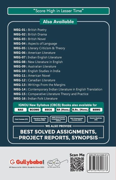 MEG-10 English Studies in India Block 1 - Institutionalisation of English Studies in India Entry of English: A Historical Overview Macaulay, Raja Ram Mohun Roy and Charles E Trevelyan A View of Post Independence Debates Settling Down of English as Studies and Medium Block 2 - Beginnings of Indian English Writing The Context of the Earliest Indian English Writings Henry Louis Vivian Derozio and the Early Voice of Identity Michael Madhusudan Dutt and the Evolution of Modernity Toru Dutt: Assertions of Indian Life Block 3 - Beginnings of The Indian English Novel The Contexts of Bankim Themes in Rajmohan's Wife-I Themes in Rajmohan's Wife-II Marriage and Transgression in Bankim's Other Novels Block 4 - Different Englishes Evolution of English Nativisation of English in Post Independent India (Functions of English) Nativisation of English Discourse: Syntax, Morphology, Phonology Intelligibility of Indian English Globally Block 5 - Problems of Teaching and Learning English Literature Problems of Teaching and Learning English Literature The March of TELI in India Role and Function of TELI in the Contemporary Context English Teaching in India The Lie of the Land: English in India Publishing in India and English Studies Block 6 - Questioning the 'Canon' Questioning the Canon, Ideology and Assumptions of the Canon The Rise of English and Issues Concerning the Canon Possibilities of New Agreements Exploding English: Criticism, Theory and Culture The Crisis in English Studies Resistance to Reading and the Question of Material Base Block 7 - Evolutions of Canons in Indian English Writing Canon Making in the Era of Gandhi, Nehru, Socialism Tagore, Premchand, Mulk Raj Anand and Raja Rao Feminism: Indian English Writers The Dalit Canon Block 8 - Decolonising The Mind Orientalism and After Literature and Nationalism Decolonising the Mind Civilisational Conflicts in Literature Resisting Colonisation and Re-Colonisation Total-30, Solved-25, Unsolved-5 June (2005-2019) December (2005-2019)