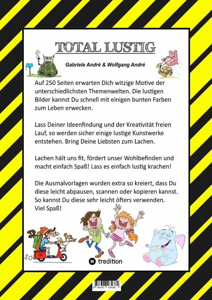 In diesem Mega Malbuch - Total Lustig, erwarten Dich 250 witzige Motive, mit denen Du kreativ in die unterschiedlichsten Themen-Welten eintauchen kannst. Deiner Fantasie sind dabei keine Grenzen gesetzt. Lass Deinen Ideen rund um die Bilder freien Lauf und ergänze so manches Motiv beliebig nach Deiner Vorstellung. Lass Dich verzaubern und inspirieren. Der Mehrwert besteht darin, dass man zur Ideenfindung und Kreativität inspiriert wird. Der soziale Aspekt, etwas analog zu tun, ist ebenso nicht zu verachten. Die zusammengestellten Motive, bieten Dir individuelle Themen zum Entdecken. Das vielfältige Angebot der Vorgaben fördert die Kreativität, insbesondere die Konzentration und erleichtert ebenso das Erlernen des motorischen Freihandzeichnens. Die Ausmalvorlagen sind extra so aufbereitet, dass man sie leicht scannen, kopieren oder abpausen kann. Somit kannst Du auch ganz leicht eigene Bilder kreieren und sie auch öfter mal verwenden. Mit den verschiedenen Vorgaben wirst Du im Handumdrehen Deine eigenen ersten lustigen Kunstwerke schaffen. Wende Dein bislang erlangtes Wissen vom Zeichnen und Malen in den verschiedenen Themen an. Durch aufmerksame Beschäftigung werden zauberhafte Bilder entstehen. Tauche begeistert in die Welt der Farben ein!Viel Spaß und Erfolg! Schau mal rein - www.wawmovie.com -
