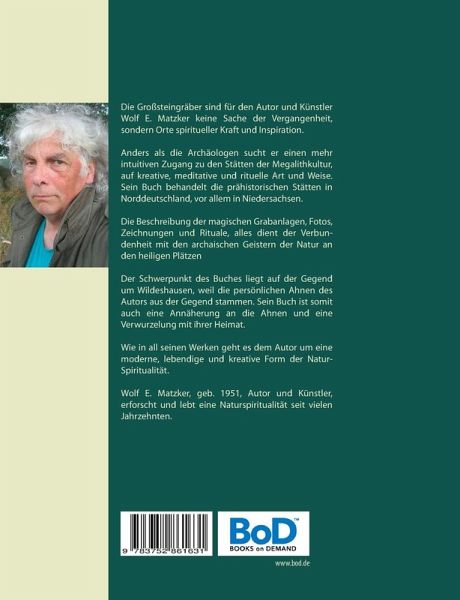 Großsteingräber sind für den Autor und Künstler Wolf E. Matzker keine Sache der Vergangenheit, sondern Orte spiritueller Kraft und Inspiration. Anders als die Archäologen sucht er einen mehr intuitiven Zugang zu den Stätten der Megalithkultur, auf kreative, meditative und rituelle Art und Weise. Sein Buch behandelt die prähistorischen Stätten in Norddeutschland, vor allem in Niedersachsen.Die Beschreibung der magischen Grabanlagen, Fotos, Zeichnungen und Rituale, alles dient der Verbundenheit mit den archaischen Geistern der Natur an den heiligen Plätzen. Der Schwerpunkt des Buches liegt auf der Gegend um Wildeshausen, weil die persönlichen Ahnen des Autors aus der Gegend stammen. Sein Buch ist somit auch eine Annäherung an die Ahnen und ihre Geister der Natur. Wie in all seinen Werken geht es dem Autor um eine moderne, lebendige und kreative Form der Natur-Spiritualität.