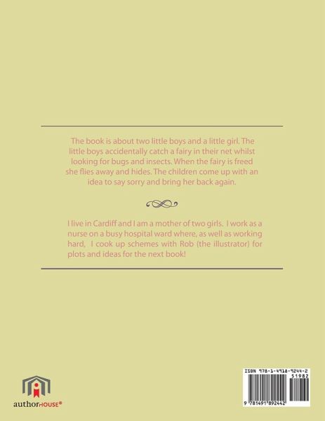 The book is about two little boys and a little girl. The little boys accidentally catch a fairy in their net whilst looking for bugs and insects. When the fairy is freed she flies away and hides. The children come up with an idea to say sorry and bring her back again.