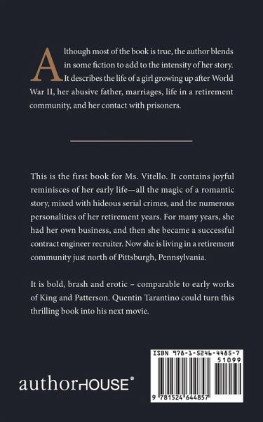 Although most of the book is true, the author blends in some fiction to add to the intensity of her story. It describes the life of a girl growing up after World War II, her abusive father, marriages, life in a retirement community, and her contact with prisoners.