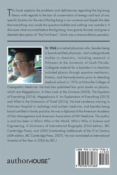 This book explains the problems and deficiencies regarding the big bang theory with regards to the law of conservation of energy and lack of any specific location for the site of the big bang in our universe and dispels the idea that everything was inside the quantum bubble and nothing was outside it. It discusses what occurred before the big bang, how gravity formed, and gives a detailed description of "the First Event," which was a time-oscillation paradox.