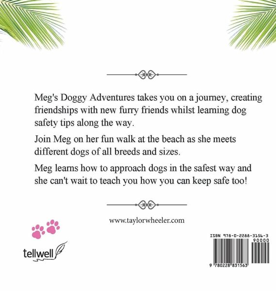 Meg's Doggy Adventures takes you on a journey, creating friendships with new furry friends whilst learning dog safety tips along the way. Join Meg on her fun walk at the beach as she meets different dogs of all breeds and sizes. Meg learns how to approach dogs in the safest way and she can't wait to teach you how you can keep safe too! www.taylorwheeler.com