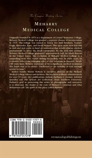 Originally founded in 1876 as a department of Central Tennessee College, Meharry Medical College was granted a separate charter of incorporation in 1915. The college was named to honor five Irish brothers, Samuel, Hugh, Alexander, Jesse, and David Meharry. They gave more than $30,000 in cash and real estate to fund an institution that would educate medical professionals to serve the black community. By the mid-20th century, Meharry Medical College graduated approximately half the black doctors in the United States. The evolution of Meharry Medical College is a compelling story that occurs during succeeding eras. In many ways, its evolution reflects the changing tides of race relations in America. Nearly 150 years later, Meharry continues to be a significant medical institution that holds true to its motto: Dedicated to the worship of God through service to man.