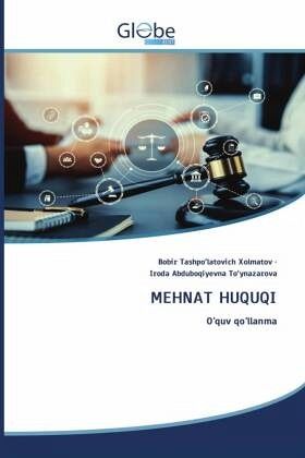 Ushbu " MEHNAT HUQUQI " nomli o¿quv qo¿llanma Oliy o'quv yo'rtlarining 'M¿hn¿t muh¿f¿z¿si v¿ t¿¿nik¿ ¿¿vfsizligi' ta`lim yo¿nalishi talablari uchun mo¿ljallangan. O¿quv qo¿llanma orqali talabäarga mehnat jarayonini tashkil qilishning huquqiy ta'minoti, ish beruvchi va xodim o¿rtasidagi munosabatlarning tartibga solinishi, mehnat qonunchiligida ko¿zda tutilgan boshqa normativ me'yor¿arni nazariy va amaliy jihatdan yondashilib amalga oshirilishlari k¿ng yoritilg¿n.O¿quv qo¿ll¿nm¿si t¿l¿b¿l¿rni nazariy mustaxkamlash, rivojlantirish va o¿zl¿shtirishlari uchun ¿niq m¿vzul¿rni o¿z ichig¿ ¿l¿di.