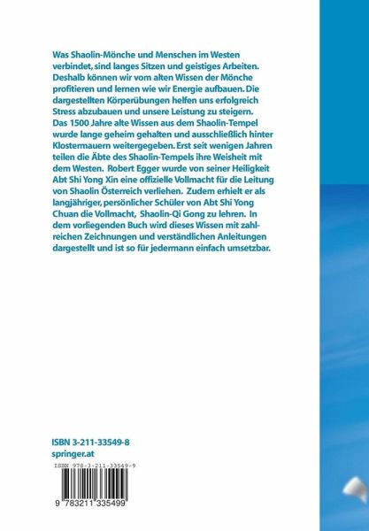 Was Shaolin-Mönche und Menschen im Westen verbindet, sind langes Sitzen und geistiges Arbeiten. Deshalb können wir vom alten Wissen der Mönche profitieren und lernen wie wir Energie aufbauen. Körperübungen, die durch Zeichnungen und einfach verständliche Anleitungen dargestellt sind, helfen uns erfolgreich Stress abzubauen und unsere Leistung zu steigern. Das 1500 Jahre alte Wissen aus dem Shaolin-Tempel wurde lange geheim gehalten und ausschließlich hinter Klostermauern weitergegeben. Erst seit wenigen Jahren teilen die Äbte des Shaolin Tempels ihre Weisheit mit dem Westen. Robert Egger wurde von seiner Heiligkeit Abt Shi Yong Xin eine offizielle Vollmacht für die Leitung von Shaolin Österreich verliehen. Weiters erhielt er als langjähriger, persönlicher Schüler von Abt Shi Yong Chuan die Vollmacht, Shaolin Qi Gong zu lehren.