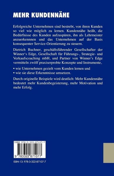 Das Buch vermittelt zwölf praxiserprobte Instrumente, um systematisch und gezielt Kundennähe zu lernen und so die Wertschöpfung des Unternehmens nachhaltig zu steigern.
