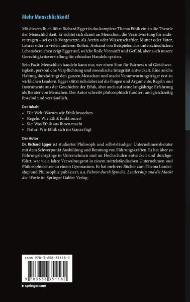 Mit diesem Buch führt Richard Egger in das komplexe Thema Ethik ein: in die Theorie der Menschlichkeit. Er richtet sich damit an Menschen, die Verantwortung für andere tragen - sei es als Vorgesetzte, als Ärztin oder Wissenschaftler, Mutter oder Vater, Lehrer oder in vielen anderen Rollen. Anhand von Beispielen aus unterschiedlichen Lebensbereichen zeigt Egger auf, welche Rolle Vernunft und Gefühl, aber auch unsere Gerechtigkeitsvorstellung für ethisches Handeln spielen. Sein Fazit: Menschlich handeln kann nur, wer einen Sinn für Fairness und Gleichwertigkeit, persönliche Verpflichtung und moralische Integrität entwickelt. Eine solche Haltung durchdringt den ganzen Menschen und macht Verantwortungsträger erst zu wirklichen Leadern.Egger stützt sich dabei auf die Fragen und Argumente, Regeln und Instrumente aus der Geschichte der Ethik, aber auch auf seine langjährige Erfahrung als Berater von Menschen. Der Autor schreibt philosophisch fundiert und gleichzeitig fesselnd und verständlich.