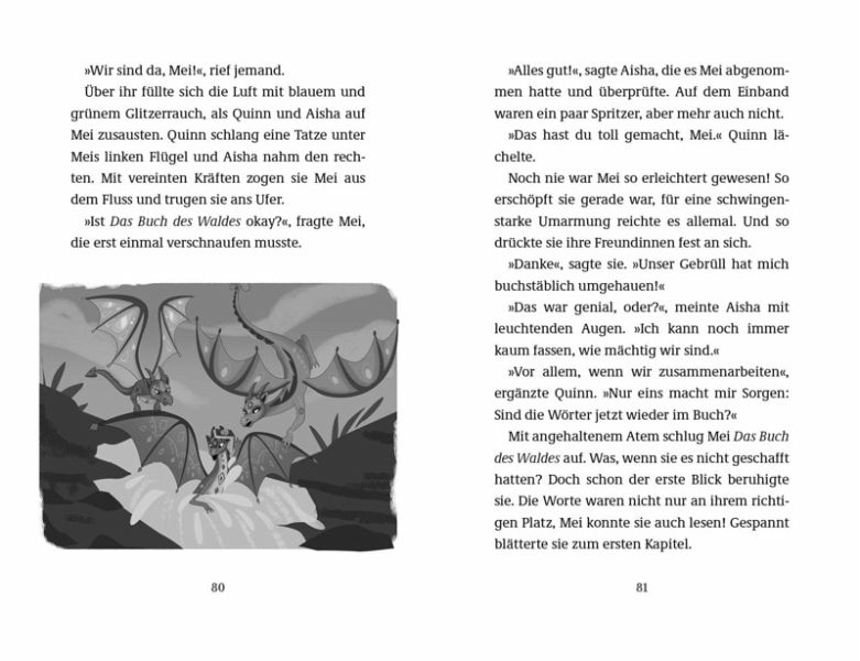 Mei ist ein Schatzdrache. Sie nutzt die Kraft des Rubins, um sich in einen mächtigen Drachen zu verwandeln. Zusammen mit ihren Freundinnen Aisha und Quinn soll sie den Zauberwald beschützen. Hierfür muss Mei das uralte und mächtige Waldbuch finden. Seine Seiten bewahren die gesamte Geschichte des Zauberwaldes. Ohne sein wertvolles Wissen ist dieser magische Ort verloren!