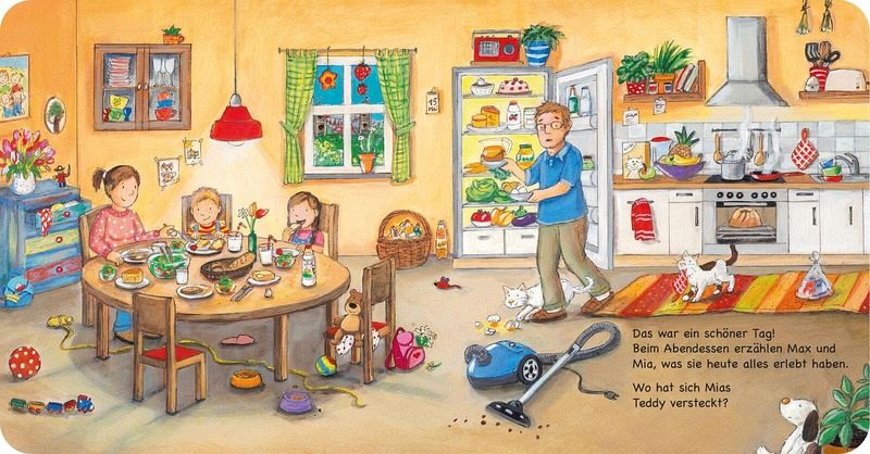 Mit den Geschwistern Max und Mia erleben kleine Entdecker:innen einen bunten Tag voller Abenteuer: Vom Anziehen am Morgen über das Zähneputzen, den Weg in die Kita, das gemeinsame Mittagessen bis hin zum Einkaufen und Abendessen - auf jeder Seite gibt es liebevoll gestaltete Wimmelbilder und einfache Suchaufgaben zu entdecken. So wird der Alltag zum spannenden Erlebnis und das Mini-Wimmelbuch zum perfekten Begleiter für zu Hause oder unterwegs.