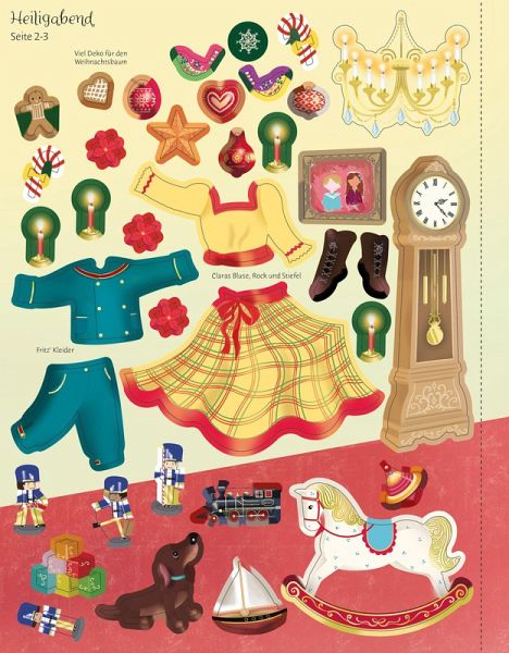 Vom Weihnachtsabend, als Clara den Nussknacker geschenkt bekommt, über den Kampf des Nussknackers mit dem Mäusekönig bis hin zum Besuch im Land der Zuckerfee - mit über 280 Stickern kannst du die Szenen des beliebten Nussknacker-Ballets zum Leben erwecken.