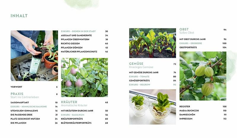 Welche Kräuter lassen sich im Topf ziehen, welches Beerenobst passt in den Blumenkasten? Erfahre in diesem Buch, welche Gemüsesorten auch auf einem Nordbalkon mit wenig Licht auskommen, welche Obstbäume sich auch auf 4 Quadratmetern ziehen lassen und wie man das Wohnzimmer im Grünen zum Bienenparadies umgestaltet.