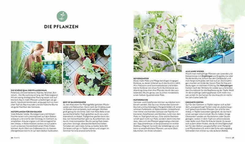 Dieses Buch stellt inüber 40 Pflanzportraits Obst-, Gemüse-, und Kräutersorten vor, die sich problemlos auch auf kleinen Anbauflächen ziehen und ernten lassen. Das sorgt für ganz viel Abwechslung auf dem Teller! Und die zahlreichen einsteigerfreundlichen Praxis- und Pflegetipps garantieren für jede Balkonsituation die optimale Ernte.