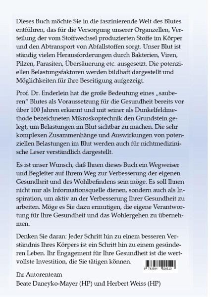 Das Buch "Mein Blut - meine Gesundheit" ist ein umfassendes Werk, das sich mit der zentralen Bedeutung des Blutes für die menschliche Gesundheit auseinandersetzt. Das Buch beschäftigt sich mit den Grundlagen des Blutes, seiner Zusammensetzung und Funktion im menschlichen Körper. Es wird erläutert, wie das Blut als Transportmedium u.a. für Nährstoffe, Sauerstoff und Abfallprodukte dient und welche Rolle es im Immunsystem spielt.Die Autoren gehen auf die verschiedenen Arten von mikrobiellen Belastungen ein, die das Blut beeinträchtigen können. Dazu gehören Bakterien, Viren, Pilze und Parasiten. Es wird erklärt, wie diese Mikroorganismen in den Körper gelangen und welche Auswirkungen sie auf die Gesundheit haben können. Es wird auch auf die Dunkelfeldmikroskopie nach Prof. Dr. Enderlein eingegangen, die lebende Blutzellen in Echtzeit darstellen kann. Desweiteren widmet sich das Buch den Möglichkeiten der Entgiftung, Entsäuerung und Ausleitung von Toxinen, Schwermetallen und sonstigen Belastungen. Hierbei werden verschiedene Ansätze vorgestellt - von Ernährungsumstellungen über natürliche Heilmittel bis hin zu speziellen Therapieverfahren. Abschließend betont "Mein Blut - meine Gesundheit" die Bedeutung eines ganzheitlichen Ansatzes für die Gesunderhaltung des Körpers.