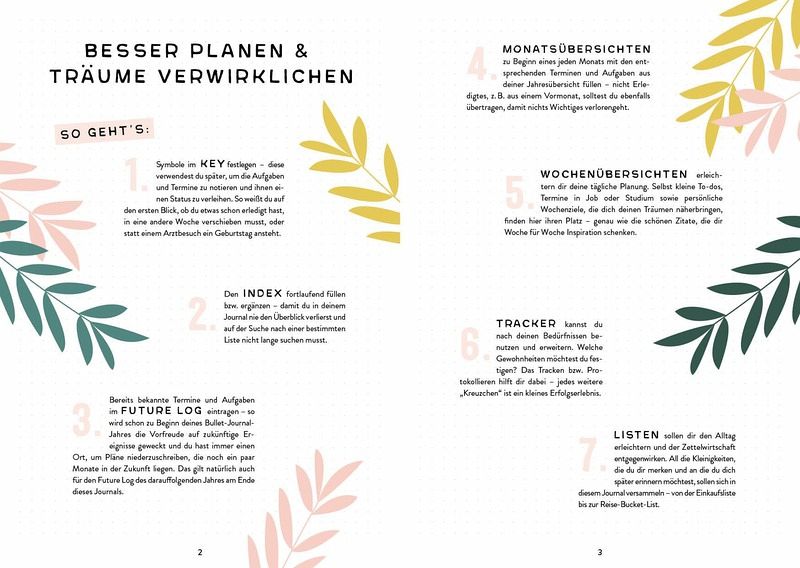 Manche nutzen ihr Bullet Journal als Kalender, Tagebuch, Terminplaner, Habit Tracker - und meistens für alles in einem. Dadurch ist es der perfekte, kreative Begleiter und persönliche Planer, der sich individuell auf die Bedürfnisse des Besitzers anpassen lässt. Doch nicht jeder hat die Zeit oder die kreativen Ideen, jede Seite zu gestalten. Für diese ist "Mein Bullet Journal" die perfekte Lösung - viele Seiten sind schon vorgestaltet und müssen nur noch befüllt werden.
