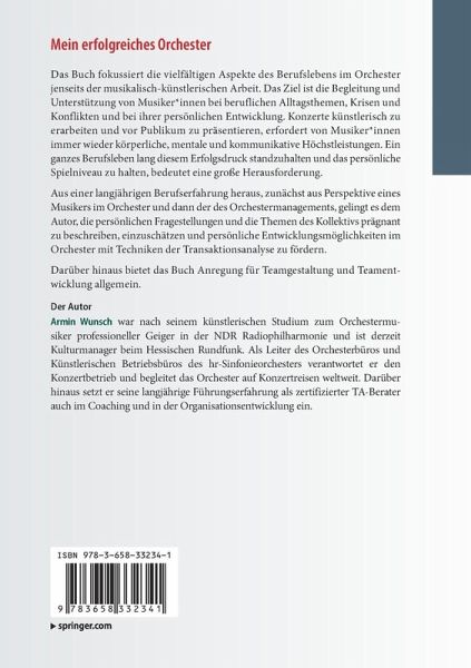 Aus einer langjährigen Berufserfahrung heraus, zunächst aus Perspektive eines Musikers im Orchester und dann der des Orchestermanagements, gelingt es dem Autor, die persönlichen Fragestellungen und die Themen des Kollektivs prägnant zu beschreiben, einzuschätzen und persönliche Entwicklungsmöglichkeiten im Orchester mit Techniken der Transaktionsanalyse zu fördern.